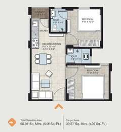 2bhk flat with outer-Facing balcony and modern amenities including childrens play area, garden, dedicated temple (Mandir), and ample parking space